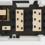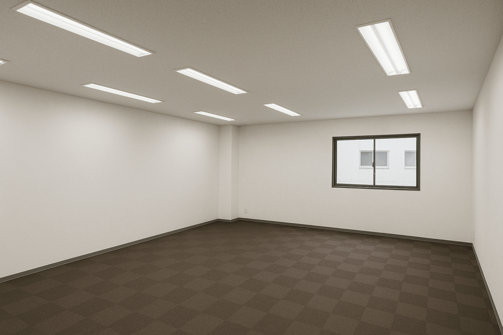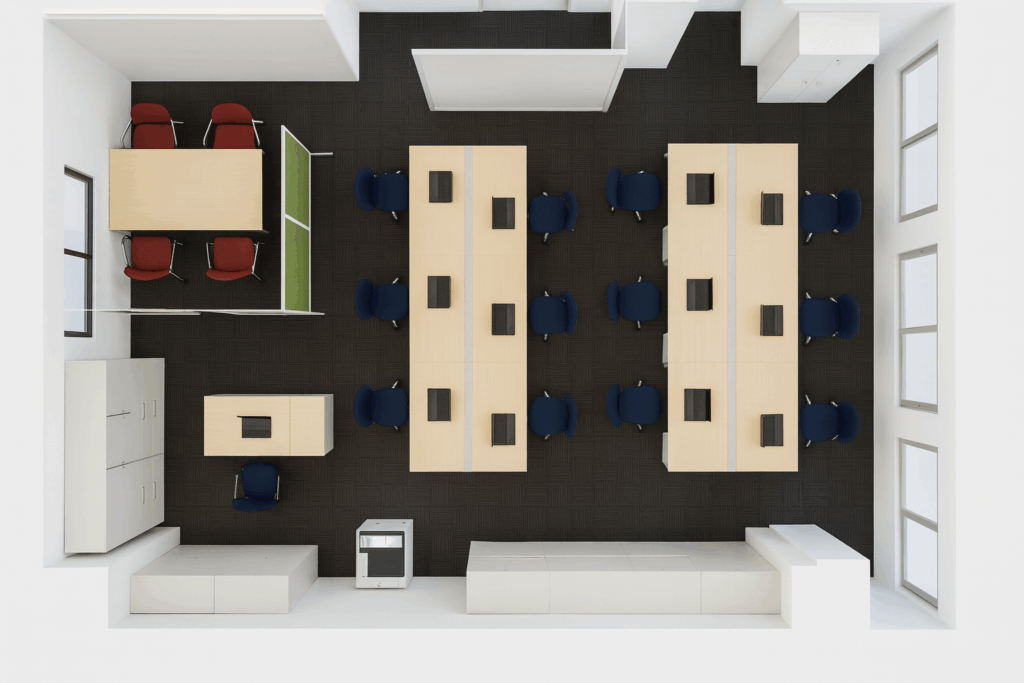 - 13名分の机・椅子・保管庫を新規で購入。ミーティングスペースも作りたい。ホワイトボードを全員が見れる位置に置きたい。