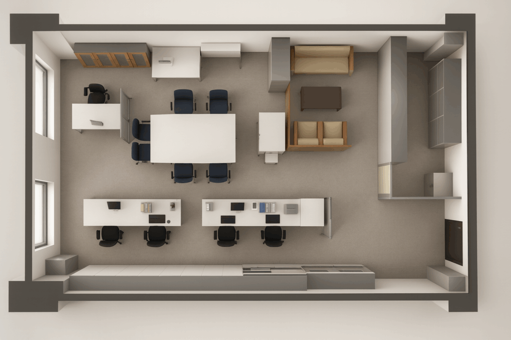 - 限られた予算なので、現在のオフィス家具を利用しつつ作業効率の上がるレイアウトにしたい。